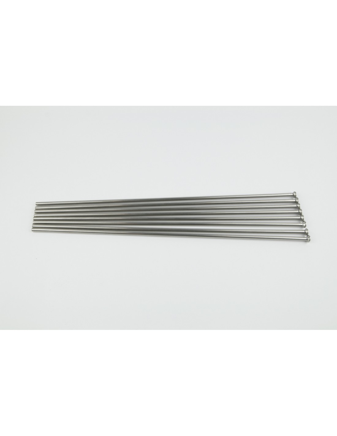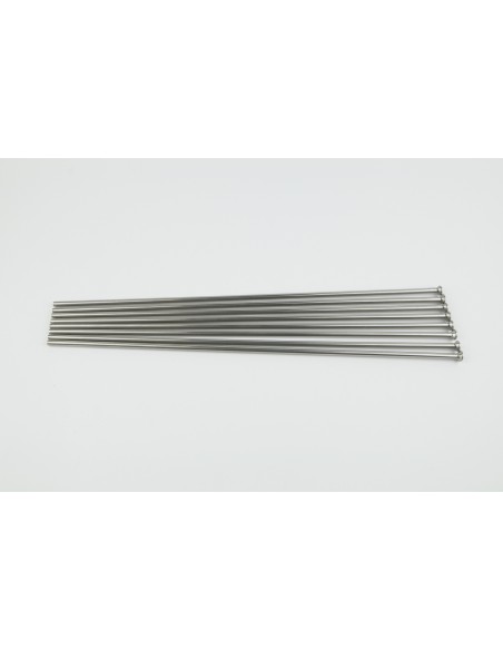 Radios inoxidables, en doble diámetro, de longitud desde 100 mm hasta 310 mm, rectos y con rosca de 15 mm. Para mas información de como identificar las medidas de los radios pulsar en el icono i. Acompañados, si se marca la opción correspondiente, de las cabecillas adecuadas para su montaje.